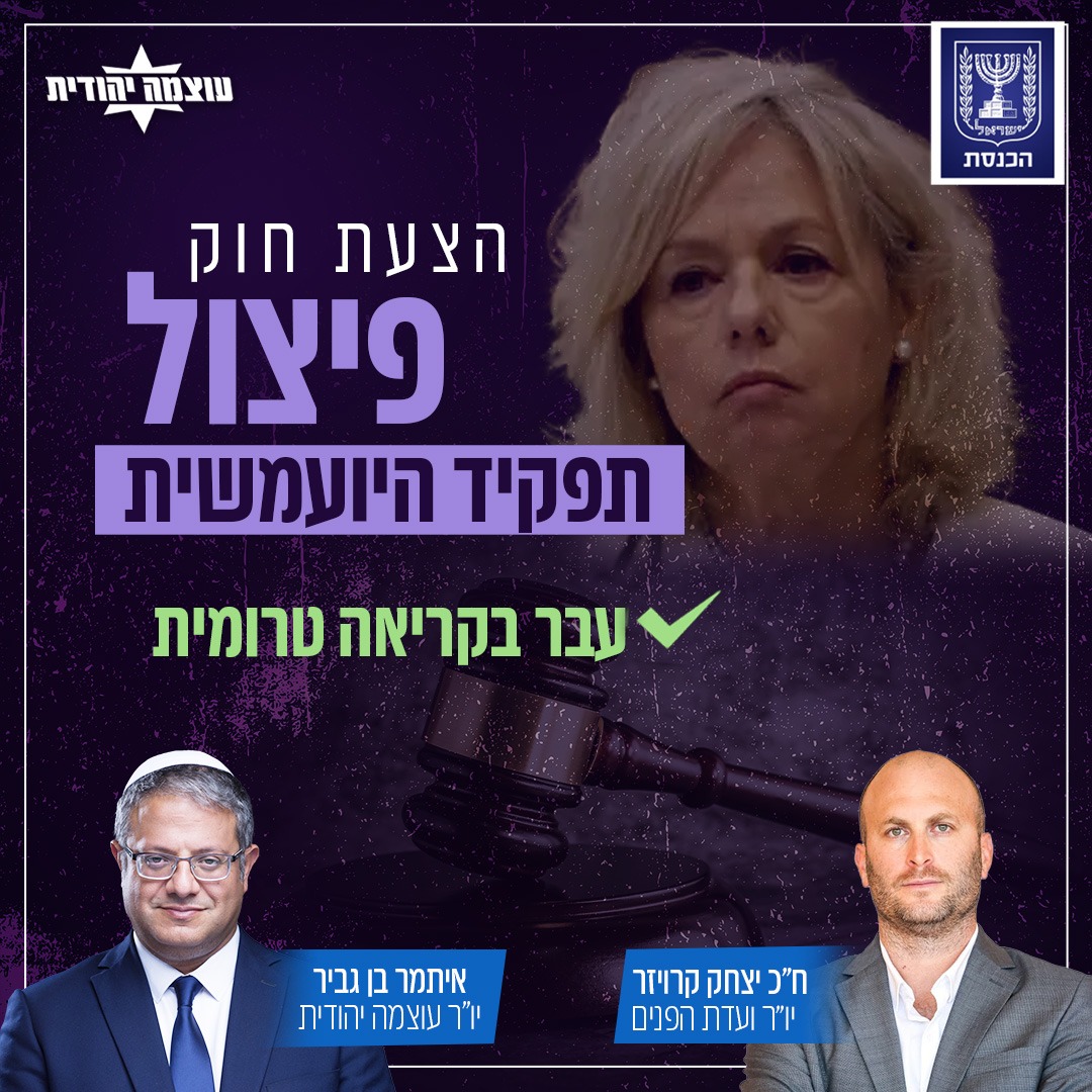 *חוק פיצול תפקיד היועמ"שית של עוצמה יהודית עבר בקריאה טרומית – השר בן גביר: "יום חשוב לדמוקרטיה". מגיש החוק ח"כ קרויזר: "צעד היסטורי לתיקון עוול מתמשך"*