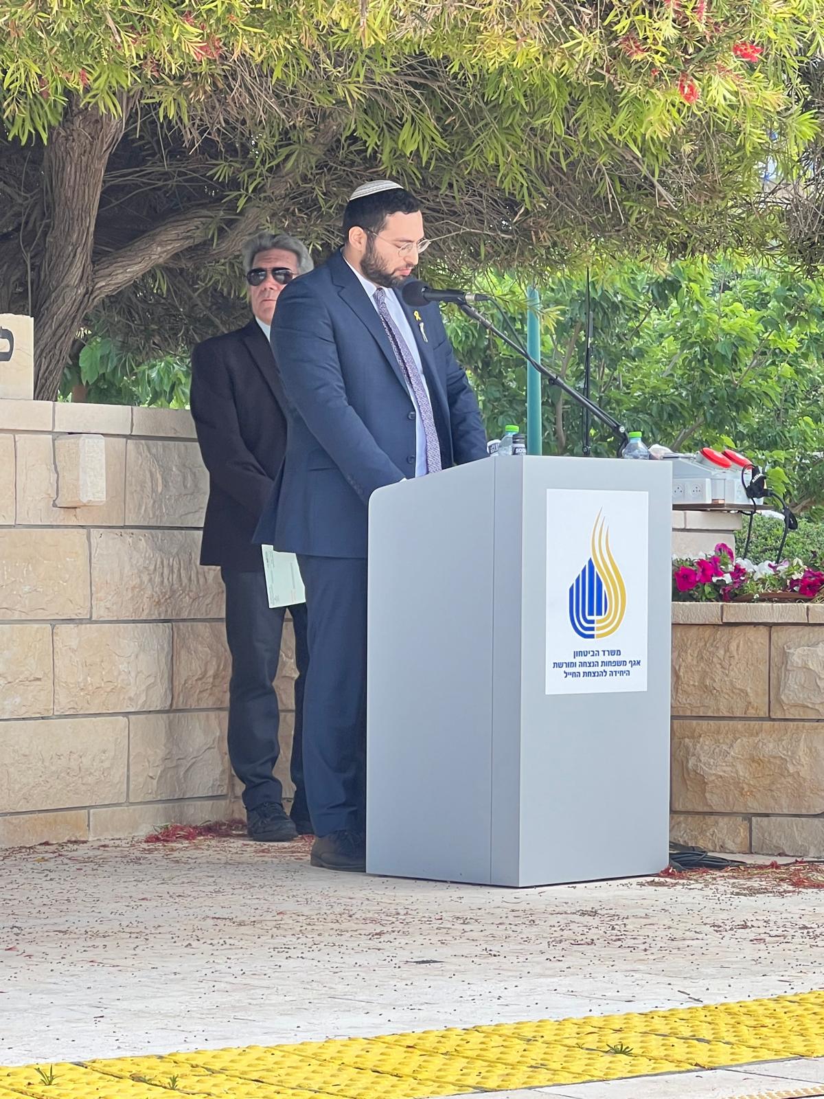 השנה זהו איננו יום זיכרון רגיל, אנו נמצאים משמחת תורה ביום זיכרון אחד ארוך שעודנו נמשך, כאשר רק אתמול קברנו חמישה מטובי בנינו. בשעה זו לוחמינו הגיבורים ממשיכים לעמוד איתן ולהילחם מול מרצחי החמאס ברצועת עזה, ופה בצפון הארץ.