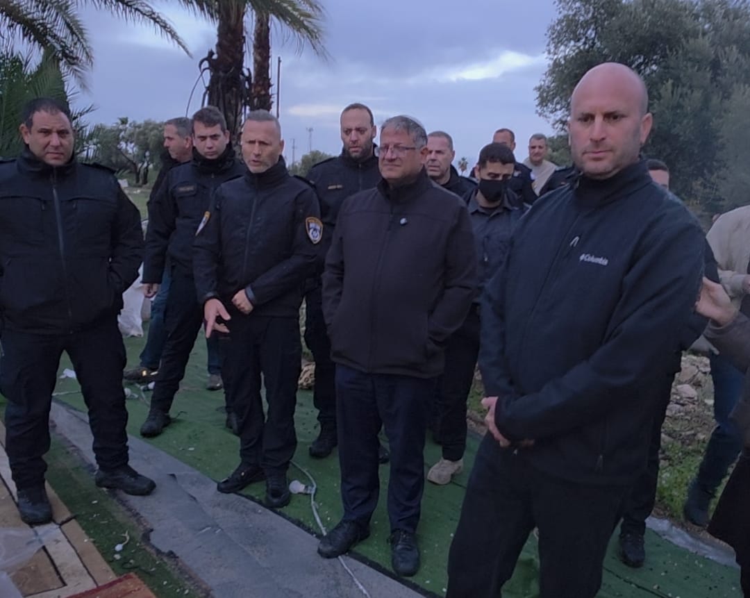 פשיטה דרמטית לפנות בוקר בנשר: המשטרה ורשות האכיפה פשטו במעמד השר בן גביר וח״כ קרויזר מעוצמה יהודית – על האוהל הסמוך לקברו של עז א-דין אל-קסאם. בן גביר: זו רק ההתחלה